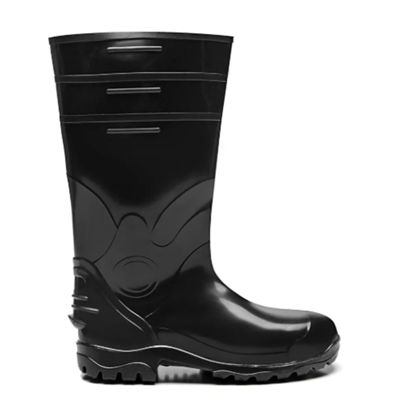 Calçado de segurança de uso profissional, tipo bota PVC cano curto, impermeável, inteiro polimérico, confeccionado em policloreto de vinila (PVC), com resistência química, biqueira de aço, palmilha de aço, sistema de absorção de energia no solado, resistência ao escorregamento e resistência a óleo combustível.
