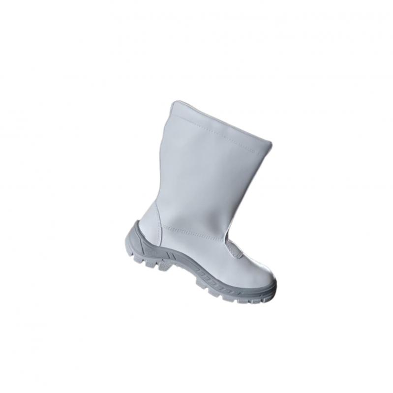 Bota meio cano, fechamento total, confeccionado em microfibra resistente a umidade, forro interno em lã sintética, palmilha sintético costurada, palmilha interna removível, biqueira de polipropileno, solado de poliuretano bidensidadel, resistente à absorção de energia no calcanhar, ao isolamento ao frio (baixa temperatura) e ao óleo combustível.