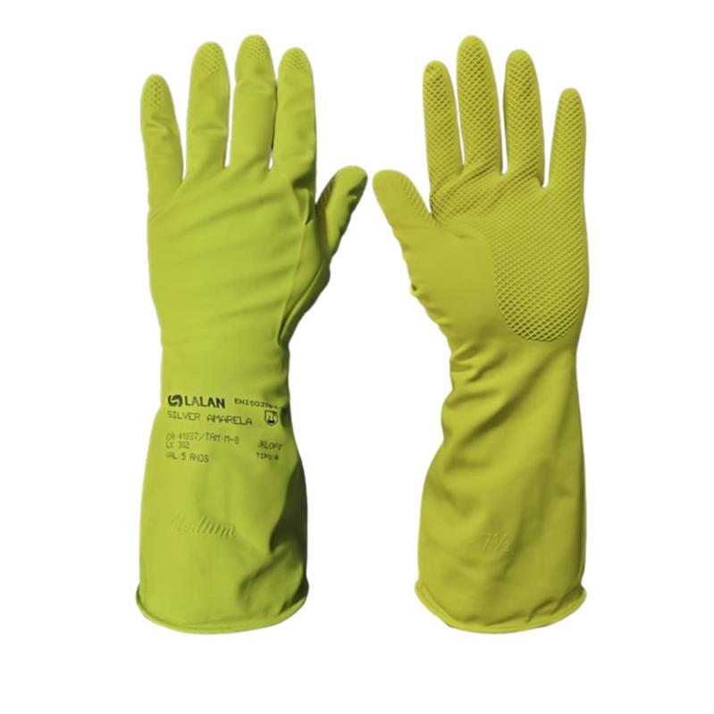 Luva de segurança confeccionada em borracha natural de látex forrada com verniz silver, anatômica, texturizada na palma e dedos.