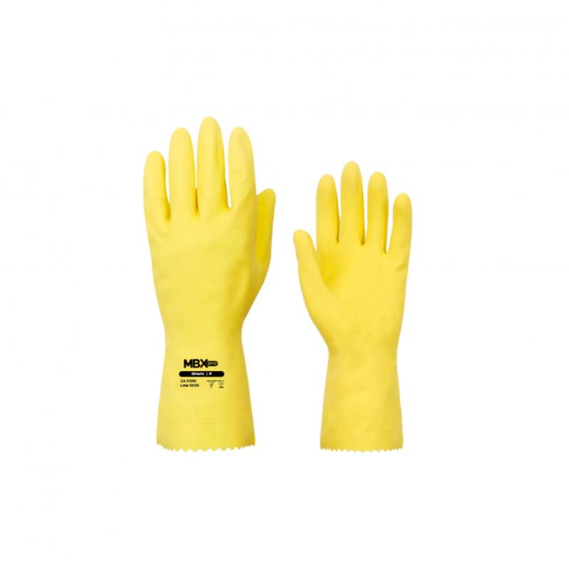 Luva de segurança confeccionada em látex natural, revestimento interno em verniz silver, relevo antiderrapante na face palmar e face palmar dos dedos.