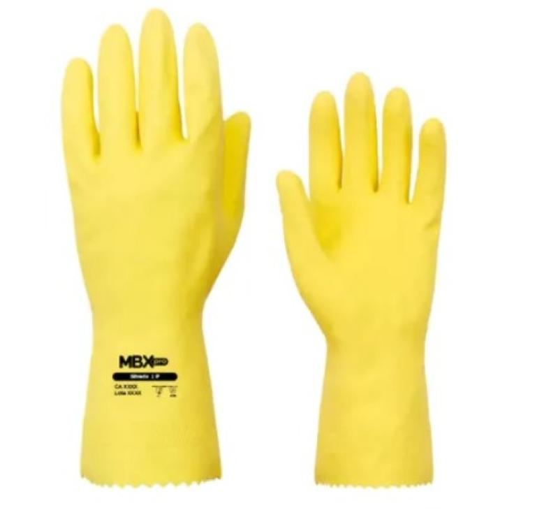 Luva de segurança confeccionada em látex natural, revestimento interno em verniz silver, relevo antiderrapante na face palmar e face palmar dos dedos.