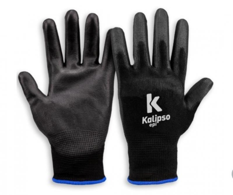 Luva de proteção, tricotada em náilon; palma, face palmar dos dedos e pontas dos dedos com revestimento em poliuretano; punho com elastano.