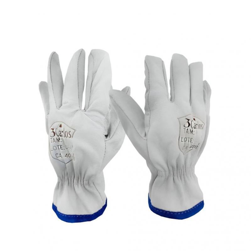 Luva de segurança confeccionada em couro bovino tipo vaqueta, com reforço palmar interno, reforço externo entre os dedos, elástico no dorso. Possui punhos de vaqueta nos tamanhos 7 cm