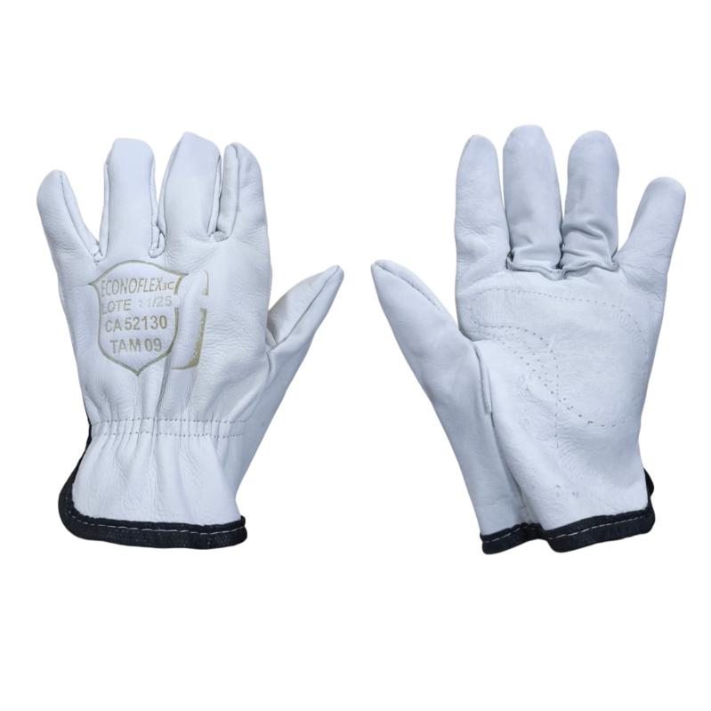 Luva de segurança confeccionada em couro bovino tipo vaqueta, com reforço palmar interno, reforço externo entre os dedos, elástico no dorso. Possui punhos de vaqueta nos tamanhos 7 cm