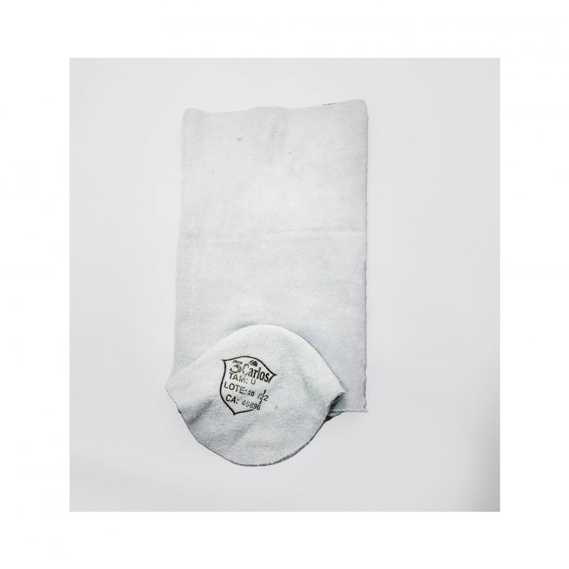 Perneira de segurança, confeccionada em raspa de couro, com fechamento lateral total em velcro.