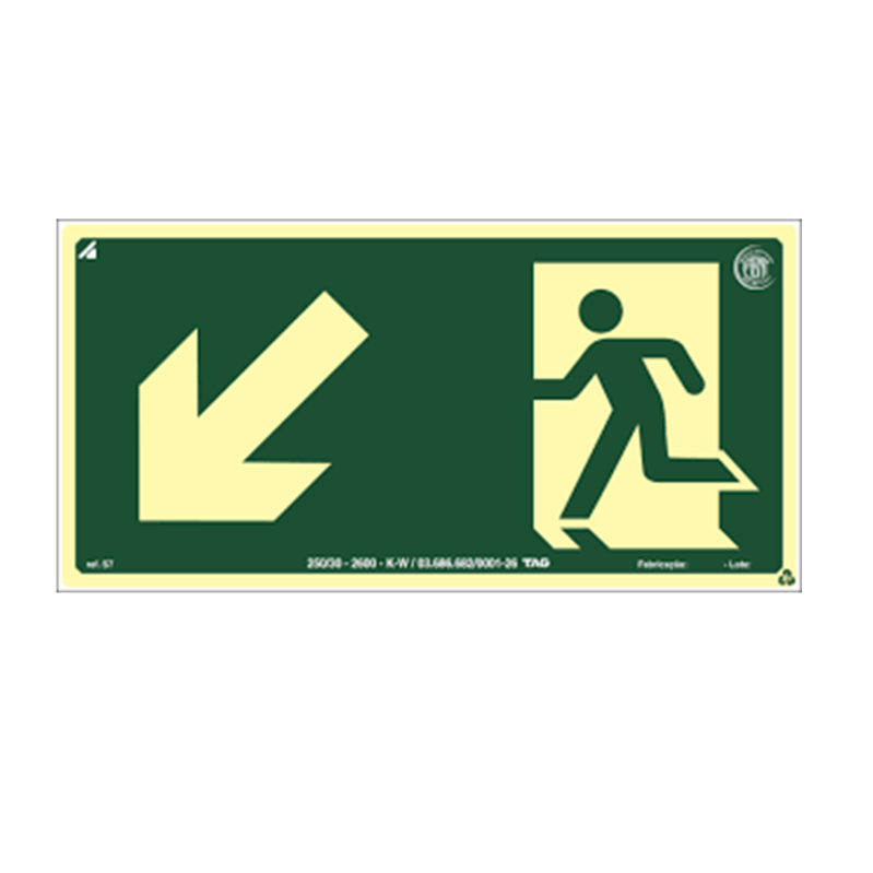 Material: PVC Antichama com Acabamento Fotoluminescente; Com ABNT.